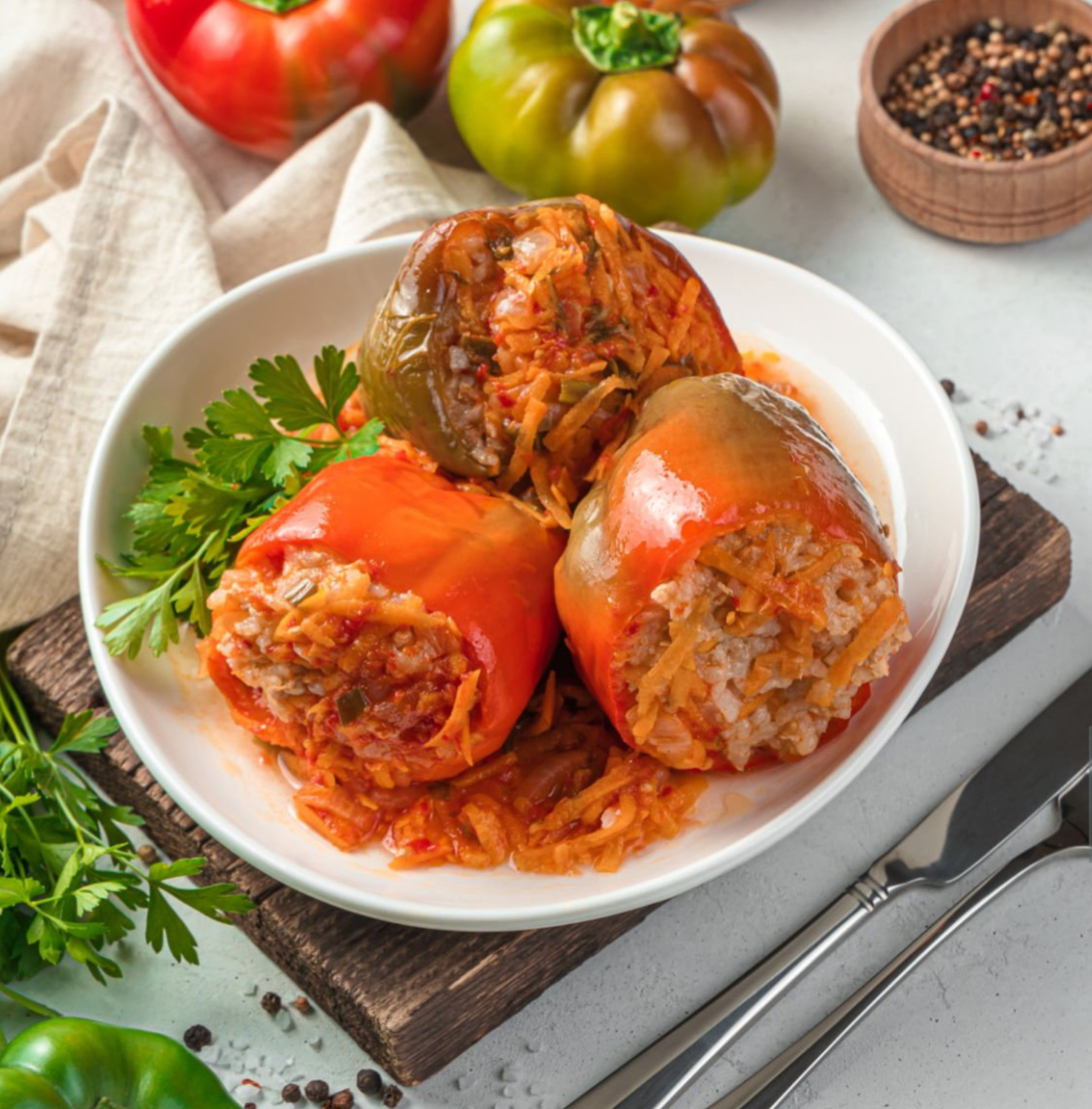 Savurează ardei umpluți cu un amestec delicios de carne la alegerea ta, ceapa si orez, preparați tradițional. Comandă de La Bursucul Ghiftuit si alege intervalul preferat de livrare!