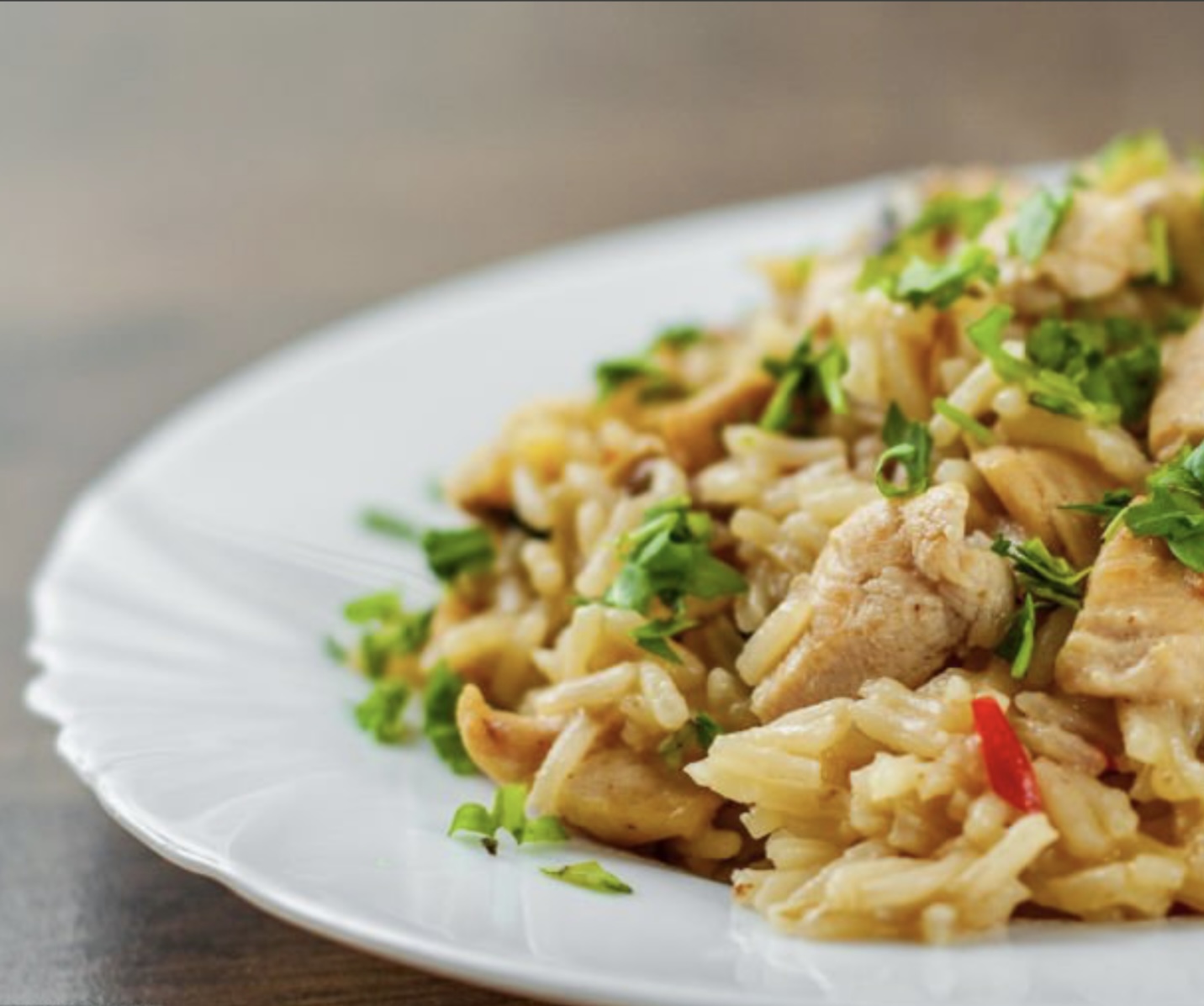 Pilaf delicios cu orez călit, morcovi, ceapă, ardei gras și supă de pui, completat cu fâșii fragede de piept de pui. Comandă acum de la La Bursucul Ghiftuit!