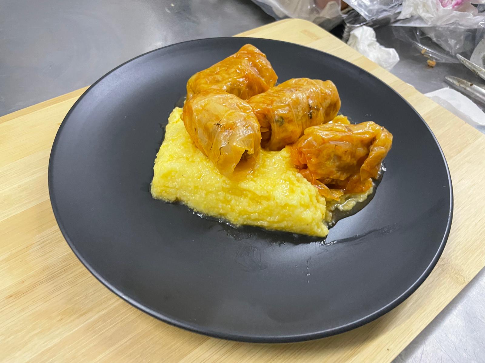 Sarmale delicioase din carne tocată de porc, orez și ceapă, în foi de varză murată, gătite la cuptor cu bucăți de bacon afumat. Comandă acum de La Bursucul Ghiftuit și bucură-te de gustul tradițional!